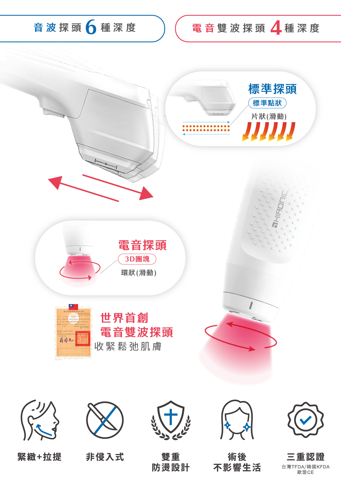 • ✔ 雙音波技術同步作用,全面提升肌膚緊實度