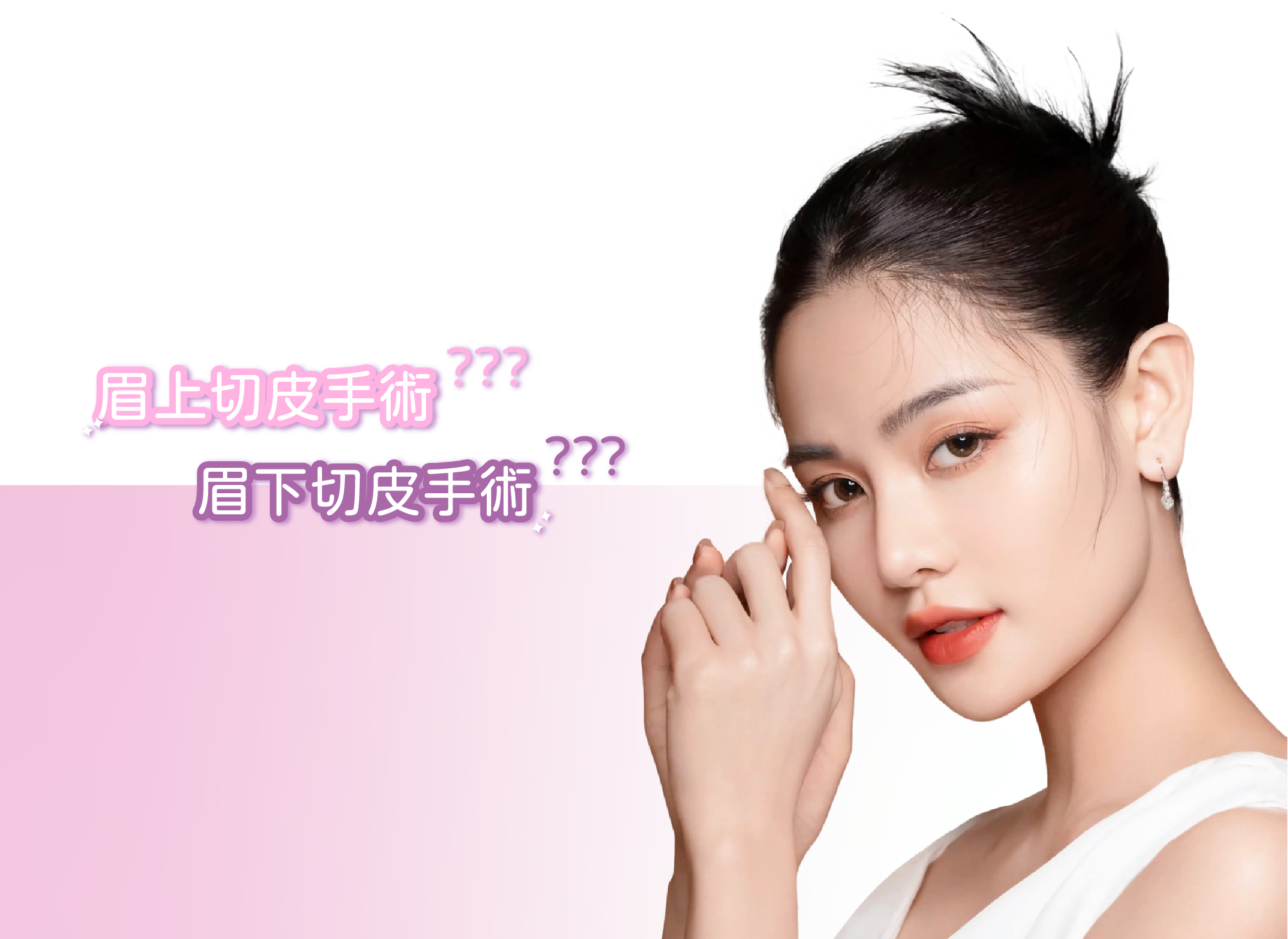 眉上與眉下都是透過切除多餘皮膚來改善眼周下垂問題,但適合的族群有所不同,以下是詳細的適用對象分析