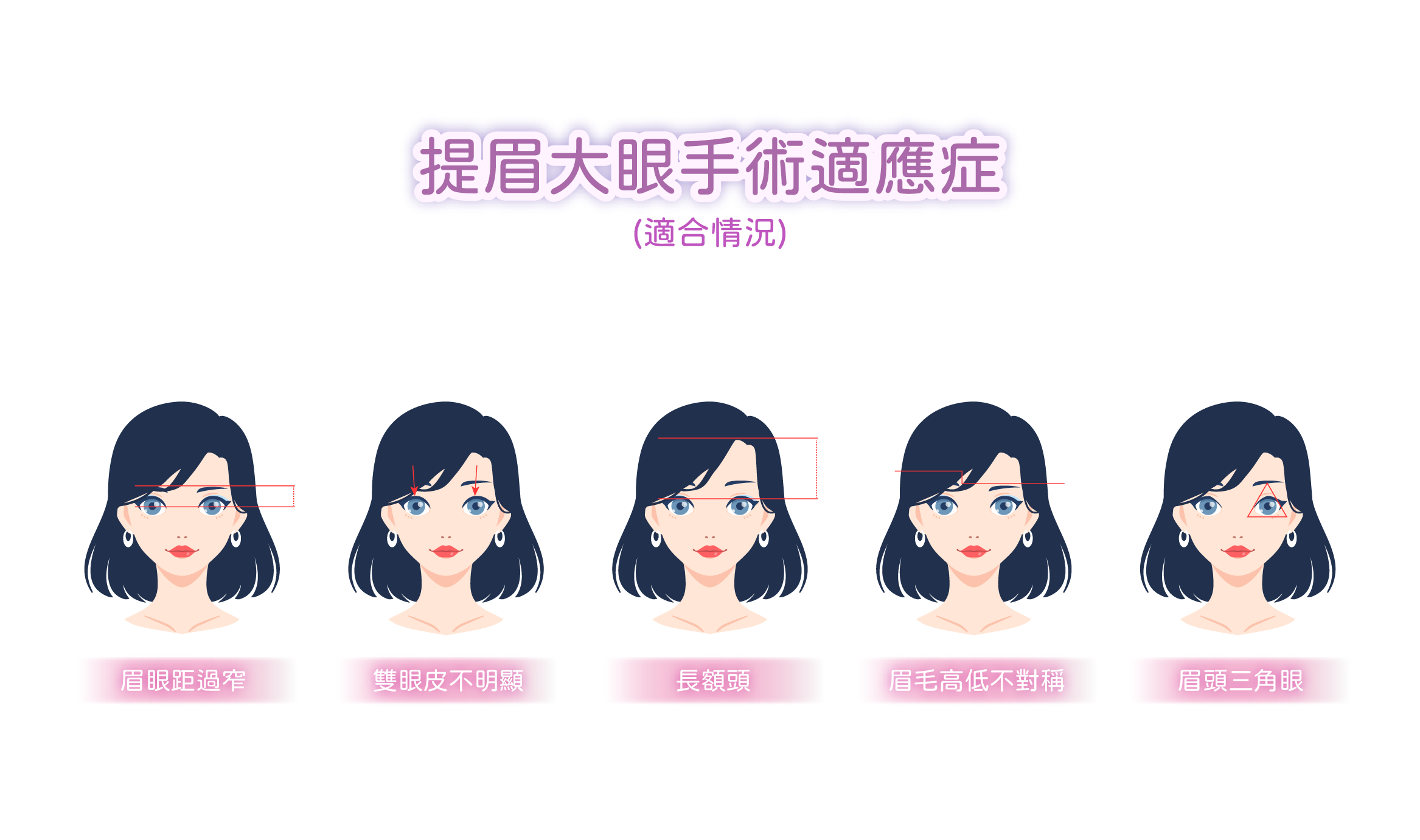 • 不希望有較明顯的疤痕者,因眉上切皮的傷口在眉毛上方,比較難完全隱藏。