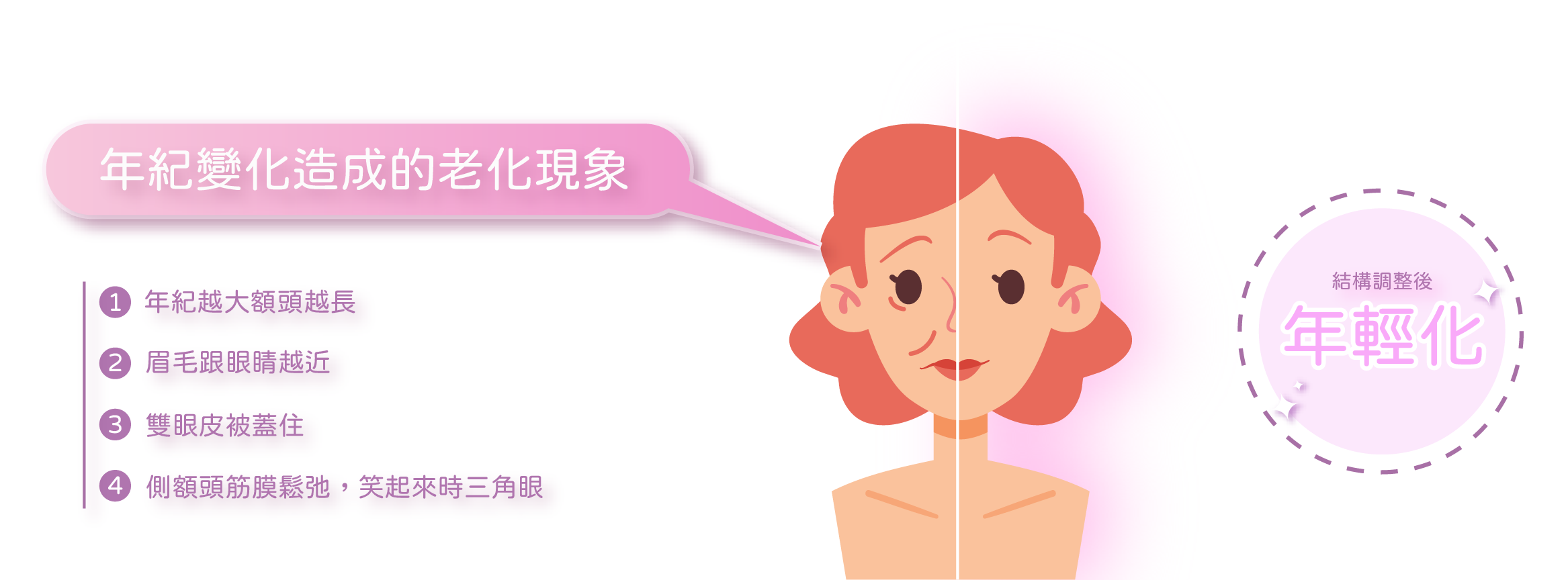 隨著年齡增長,眉毛與眼皮的支撐力減弱,導致眉眼區域下垂,使人看起來顯老、疲憊,甚至影響視線。