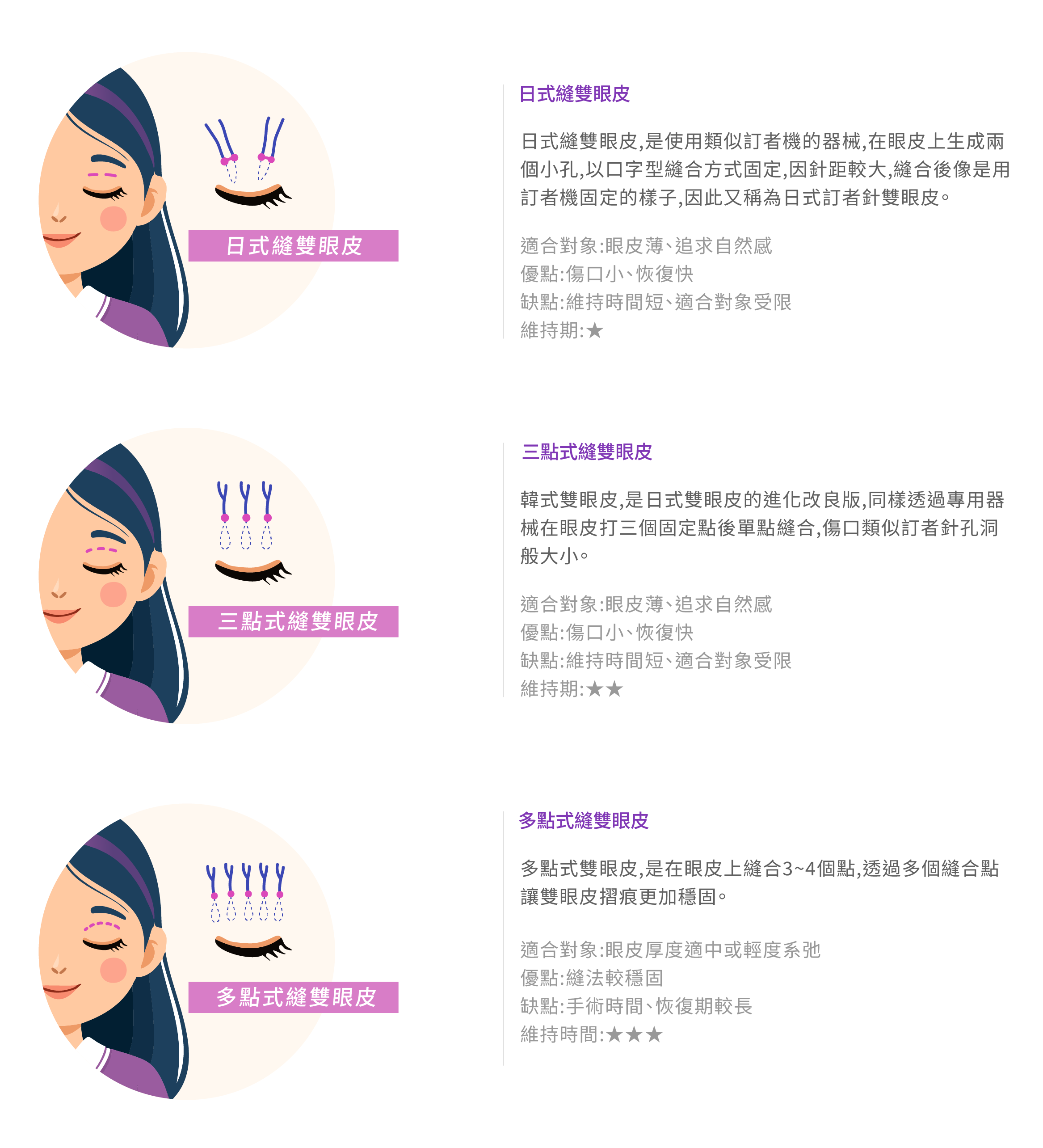 1. 縫雙眼皮:(訂書針雙眼皮、3點式、連續式)
