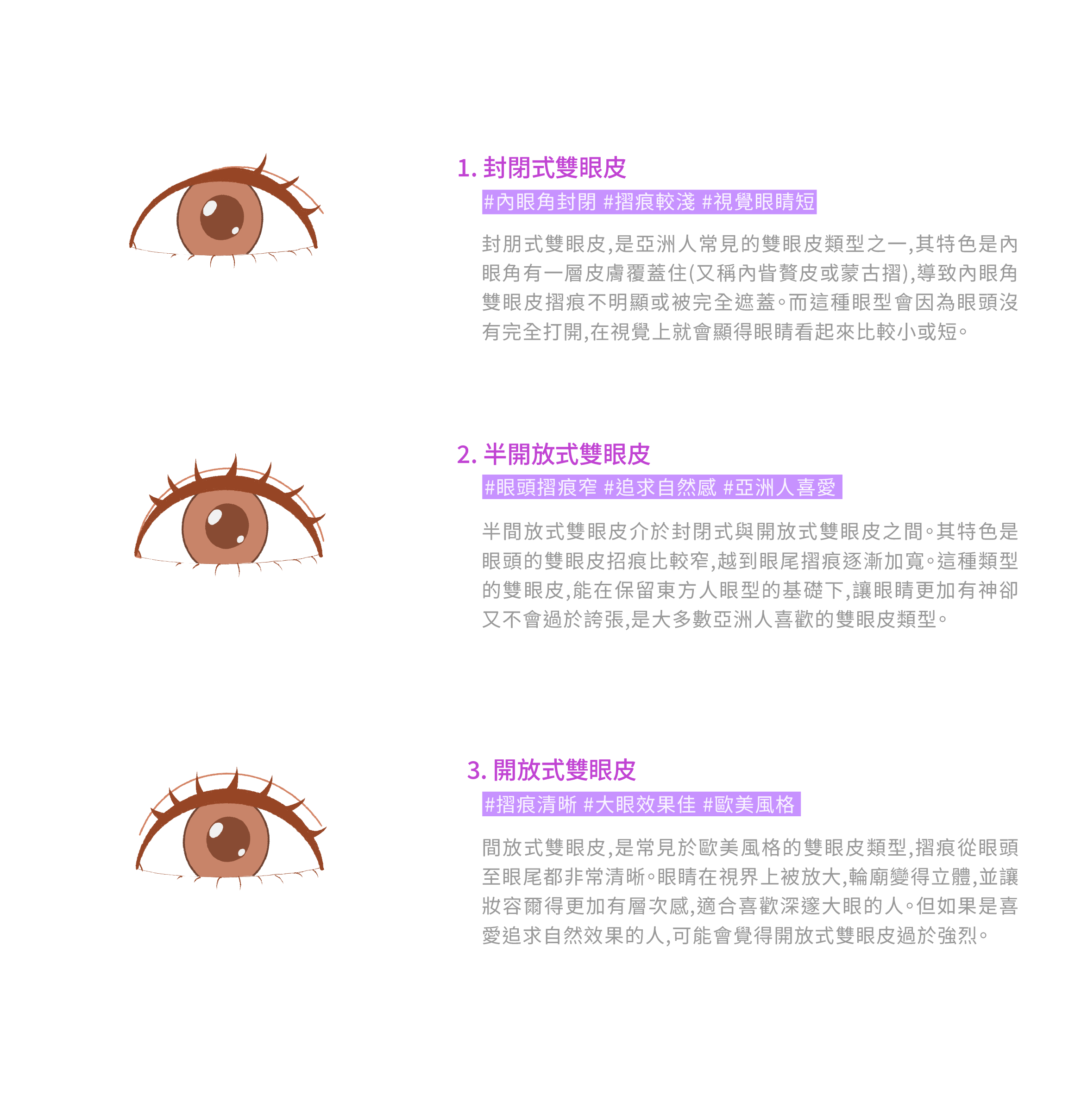 「割雙眼皮」 兩種手術方式,各自有不同的適應症與特點。