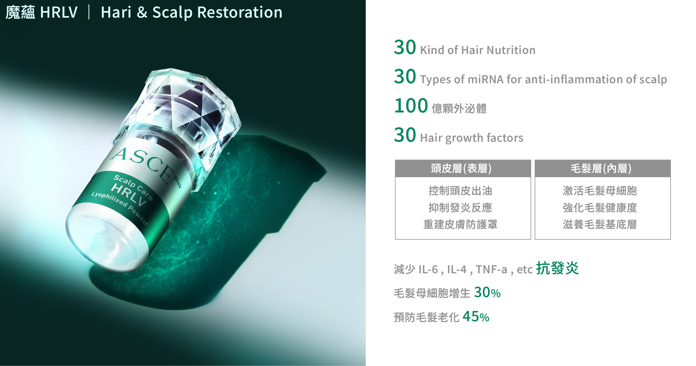 ASCEplus魔泌外泌體療程不僅是表面性的止掉髮方案,更從根本活化頭皮與毛囊,打造科學、高效且溫和的全新生髮模式,適合初期落髮、中度掉髮或產後調理需求者。